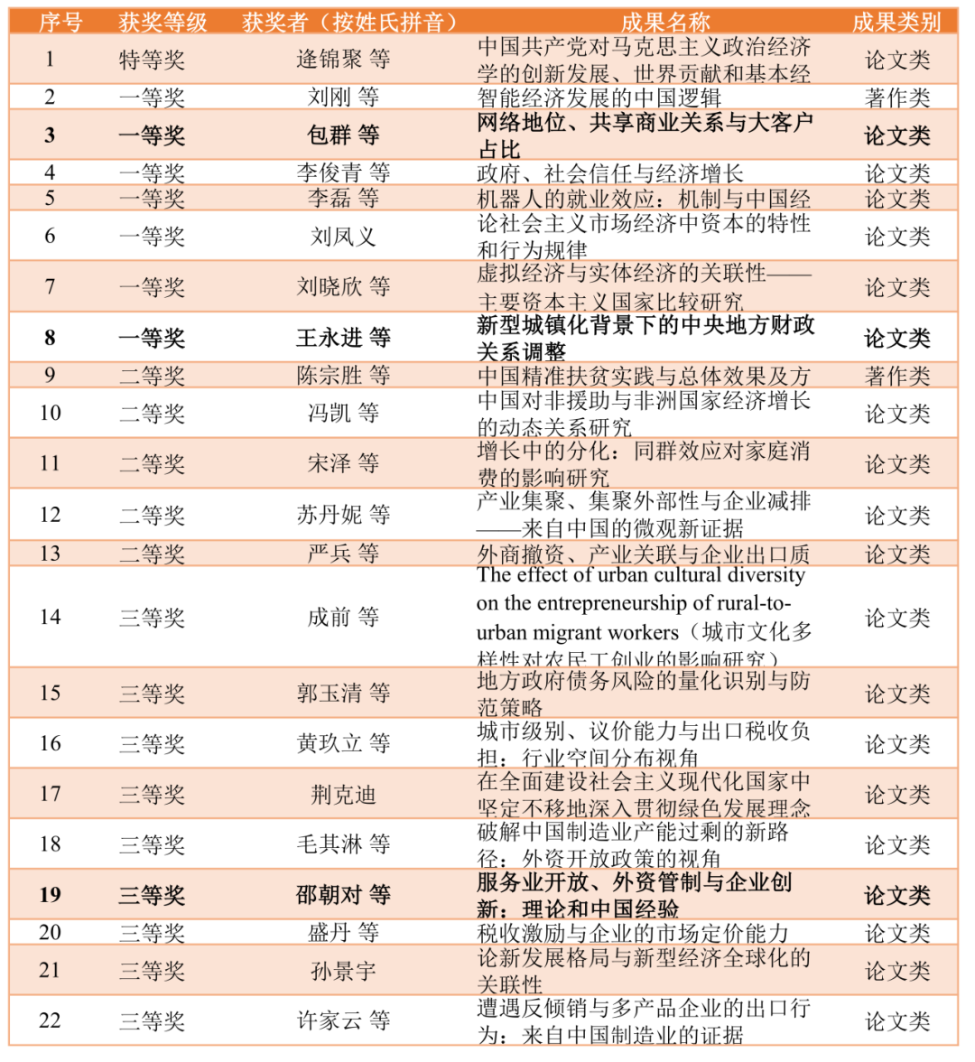 2023-12-09近日,天津市社会科学界联合会公示了第十八届天津市社会科学优秀成果奖评选结果,经济学院共有22项成果获奖。其中,我系包群老师等人的《网络地位、共享商业关系与大客户占比》、王永进老师等人的《新型城镇化背景下的中央地方财政关系调整》获论文类成果一等奖。邵朝对老师等人的《服务业开放、外资管制与企业创新:理论和中国经验》获论文类成果三等奖。