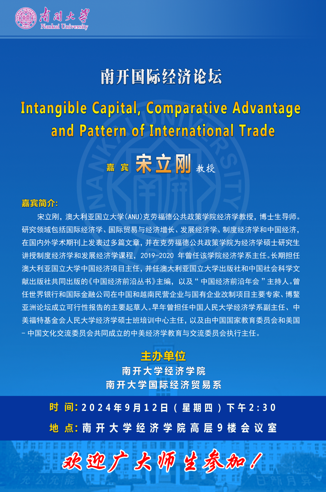 讲座地点:南开大学经济学院高层9楼会议室